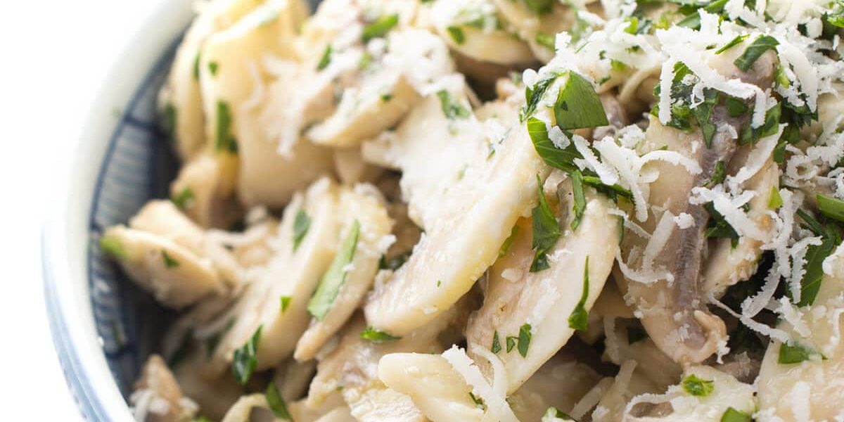 This savoury salad is made with crunchy mushrooms, lemon juice, parmesan and fresh parsley. You can make it in just a few minutes and it is a bomb of flavour to complete your favourite dishes.