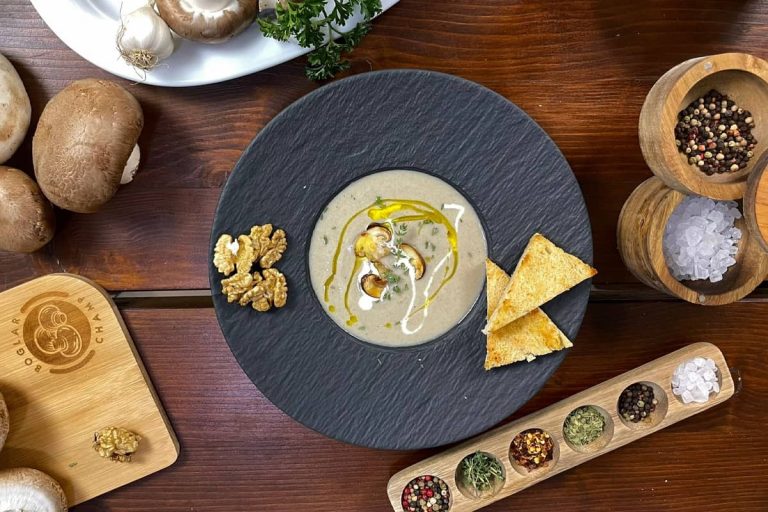 Most of the time, bean soup is served with pork knuckles, smoked ham, or sausage, although very delicious vegetarian versions can also be prepared – all you need is a little creativity and champignon mushrooms.