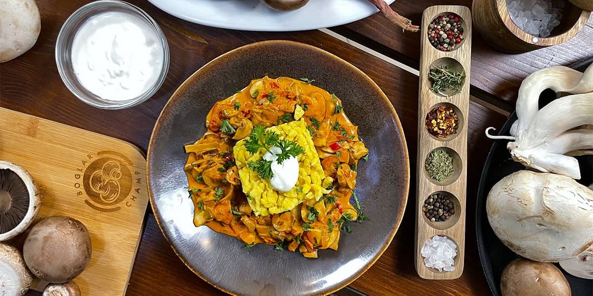 Ha megfőtt a gombapörkölt, a nokedlivel tálaljuk.